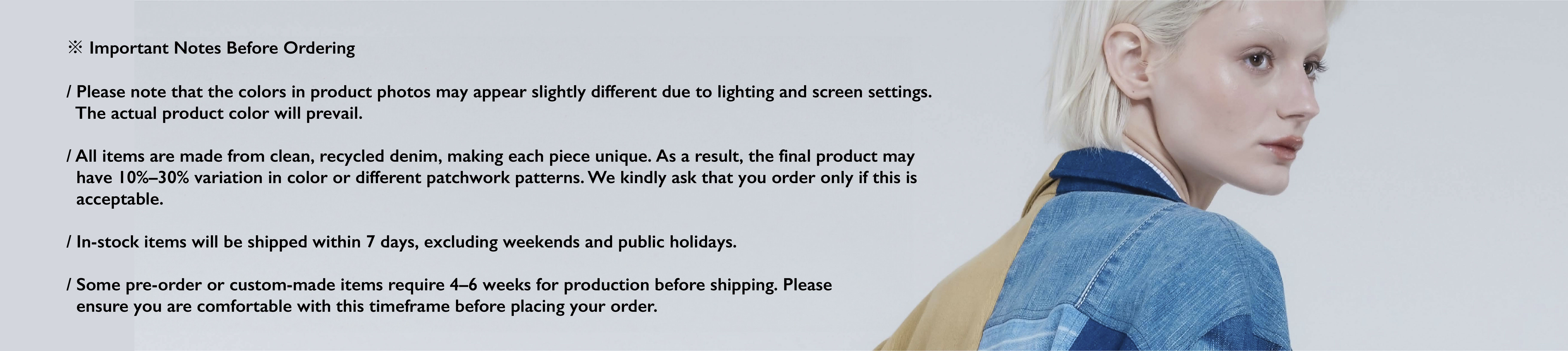 2. If the garment has spliced white fabric, slight staining of the white part may occur due to prolonged wear or friction with the dark denim part, which is a normal phenomenon.
