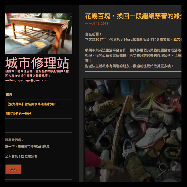 城市修理站的創辦人,熱愛修理, 佩服修理師傅高超的手藝,