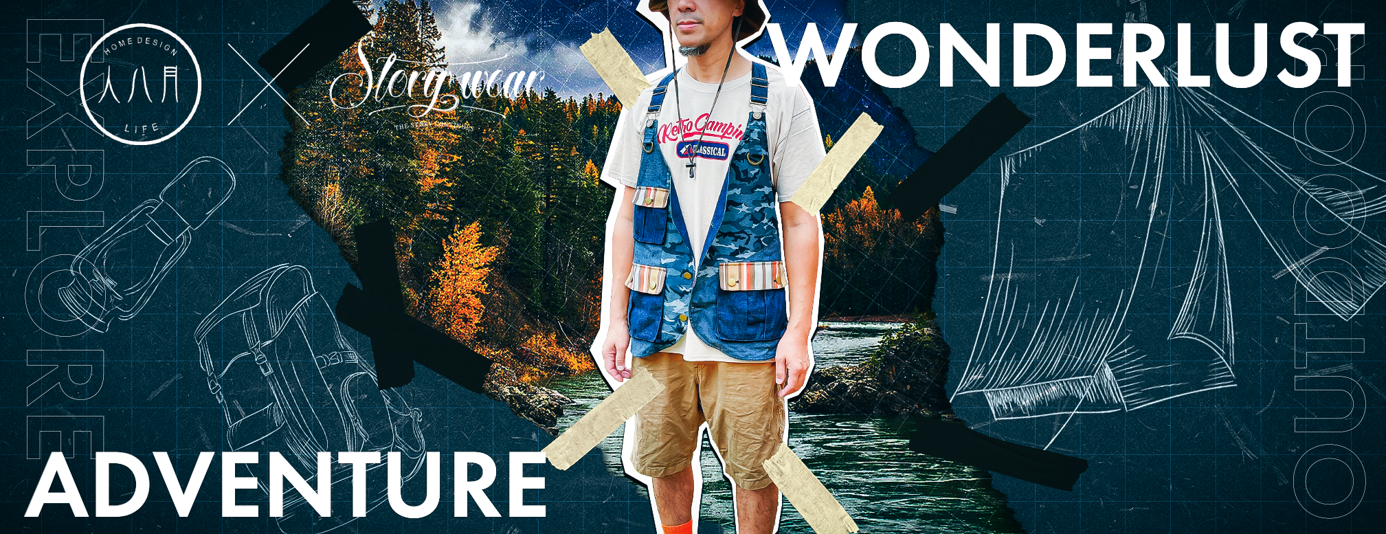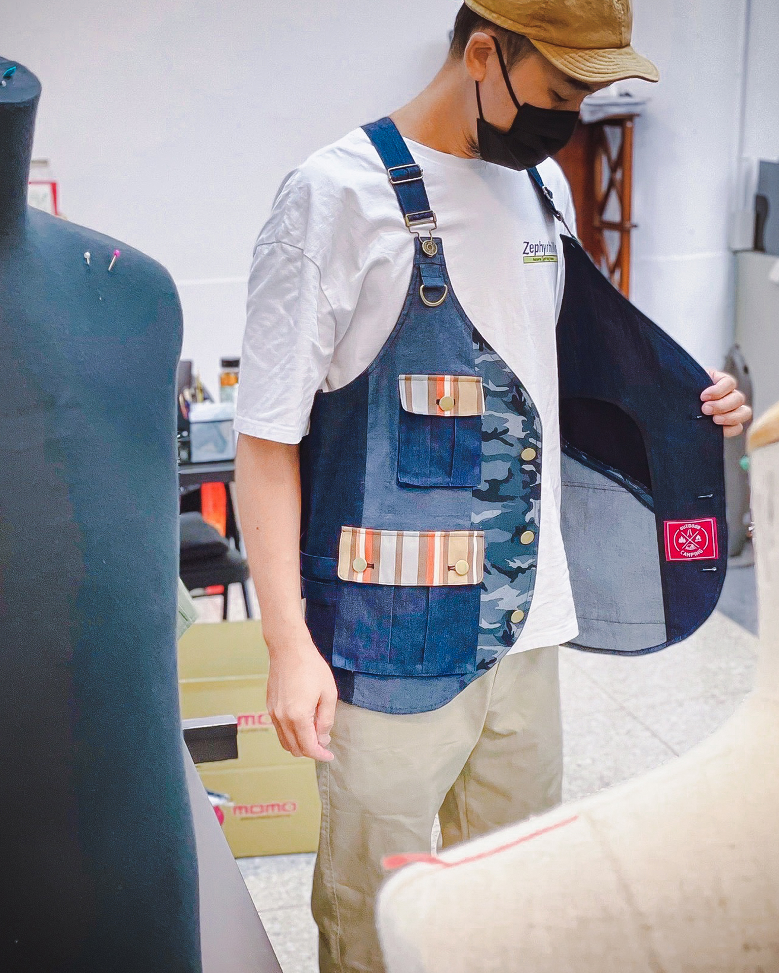 同樣愛物惜物、堅持手作精神的人八月與Story Wear,此次合作以人八月的帳棚作為靈感發想,使用回收丹寧牛仔褲與帳篷天幕的邊角料,打造出這款獨一無二的露營背心。