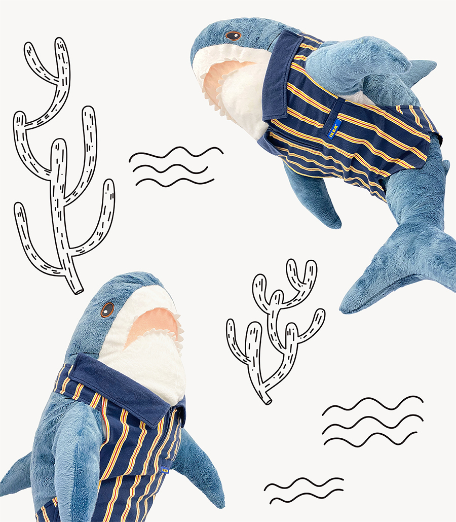 在這次展覽中,除了會再次看到更多不同尺寸的以「IKEA員工的舊制服」改造而成的寵物制服、鯊鯊制服,