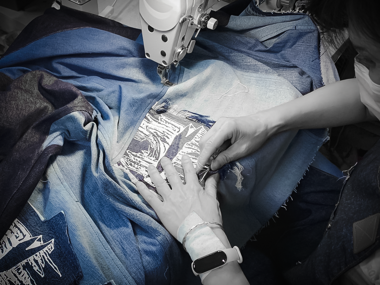 不浪費資源—手工拆解拼接。讓舊衣再生