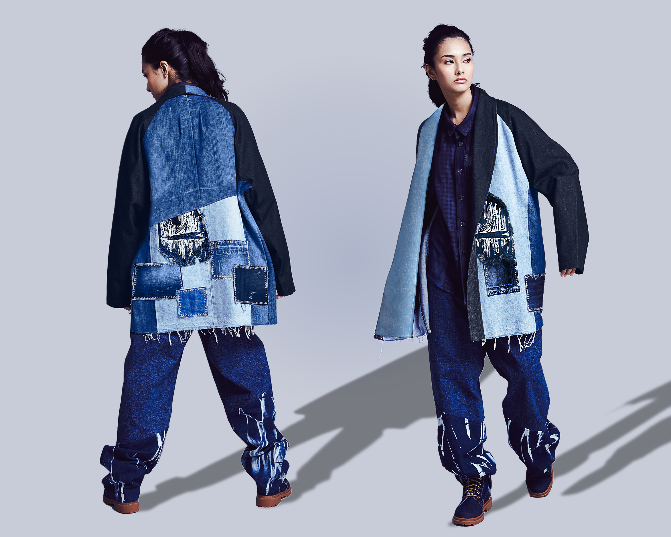 此次獨家聯名款「日式絲瓜領外套」、「立體剪裁外罩」,皆以寬鬆版型結合牛仔元素抽鬚、拼接工法,以及博士的山水印花,彰顯整體造型層次,呈現具有個性的多元穿搭。
