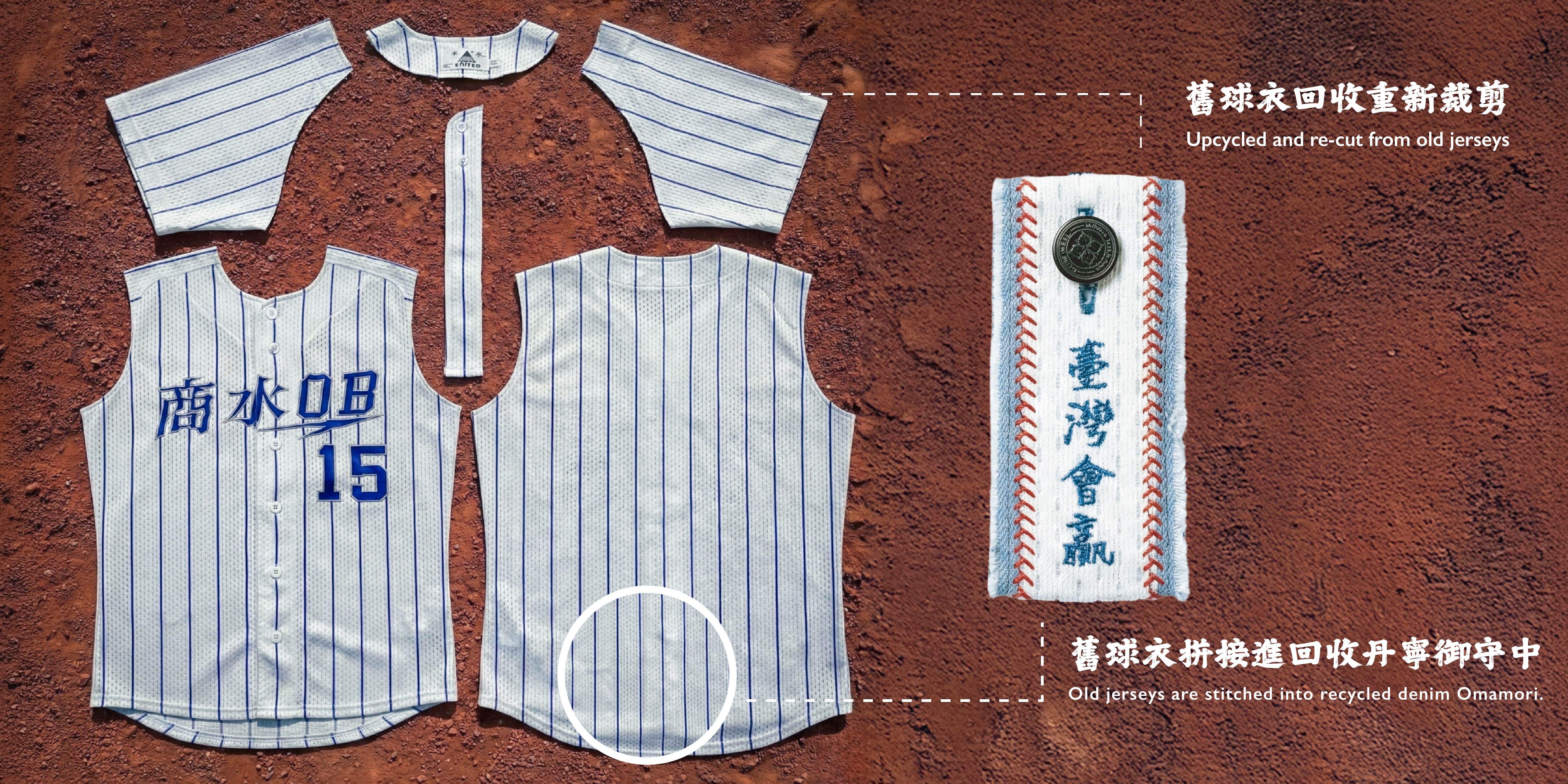 我們蒐集來自全台的舊棒球衣,並搭配 Story Wear 招牌的「回收丹寧」,把球場上每一次揮棒、跑動、汗水與堅持,重新縫合成一枚能隨身帶著走的應援信物。
